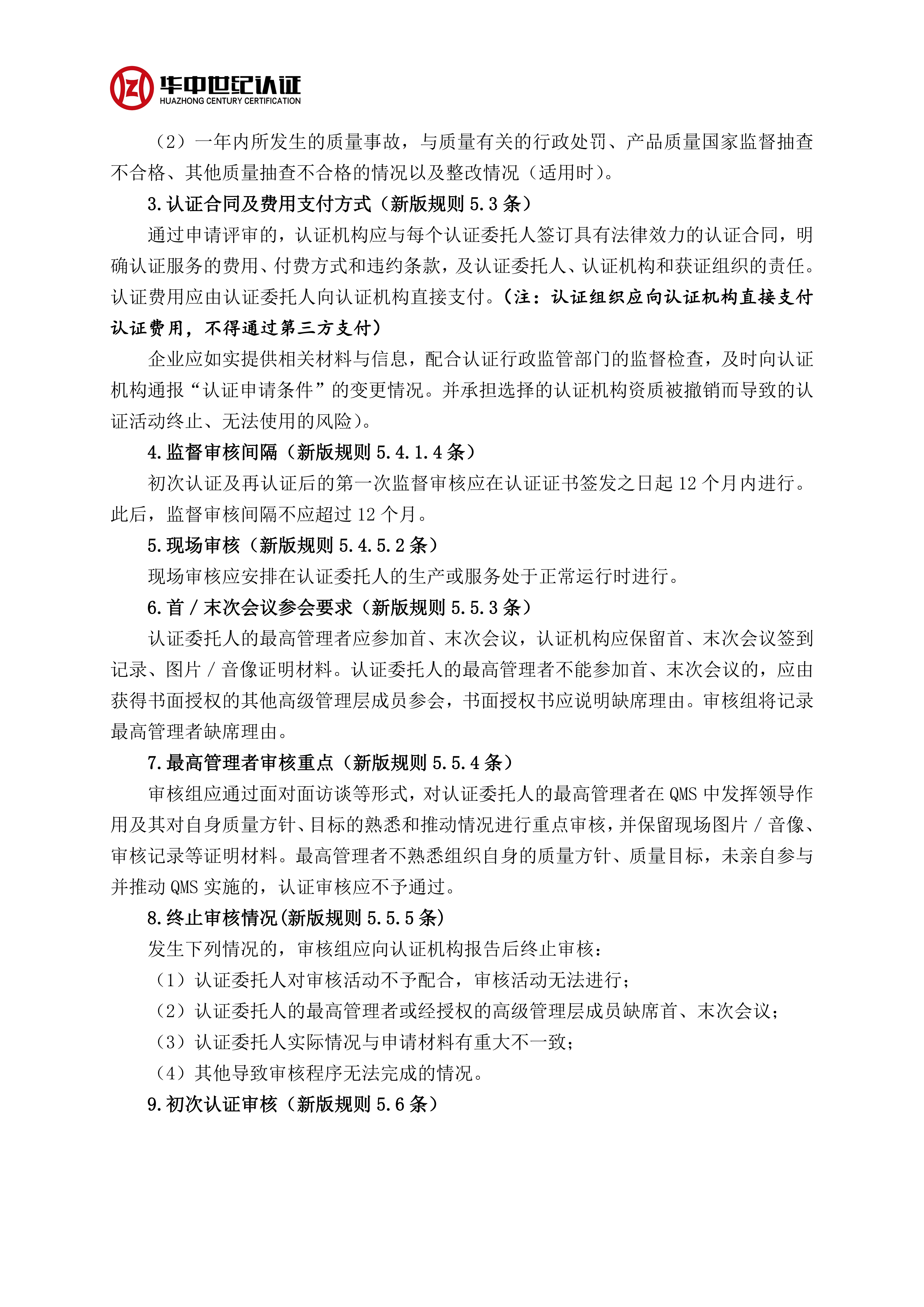 關(guān)于2025年新版《質(zhì)量管理體系認(rèn)證規(guī)則》要求變化的告知書
